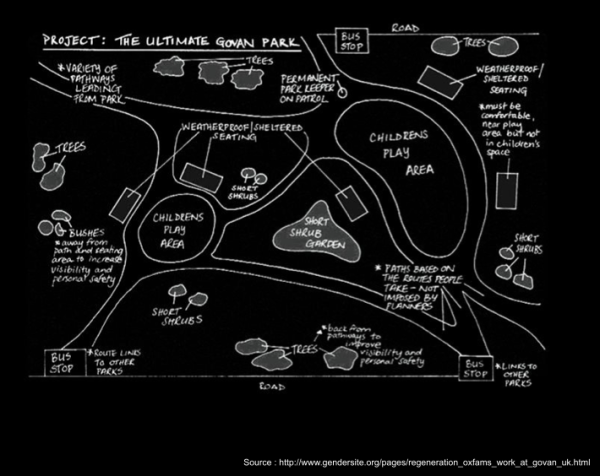 從女性視角出發(fā)設(shè)計(jì)的社區(qū)公園,位于格拉斯哥,資料來(lái)源: Group 2 Globalisation course TU Delft 2011