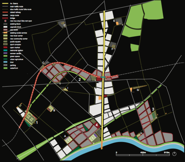 項(xiàng)目成果:布宜諾斯艾利斯Nueva Pompeya地區(qū)的策略性規(guī)劃方案,資料來(lái)源: Group 2 Globalisation course TU Delft 2011