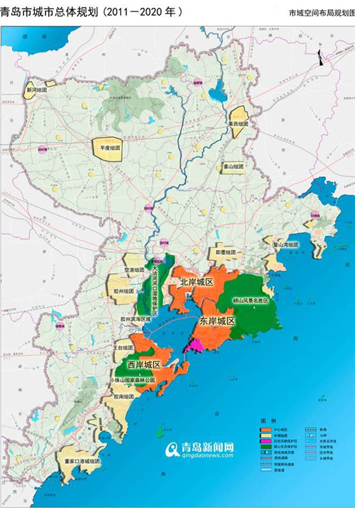 ◆北岸城區(qū):是青島市域城鎮(zhèn)布局的空間中樞,以高水平打造科技型、生態(tài)型、人文型新城區(qū)為目標(biāo),合理控制開(kāi)發(fā)時(shí)序,為建設(shè)青島市未來(lái)的公共服務(wù)和公共管理中心預(yù)留發(fā)展空間。