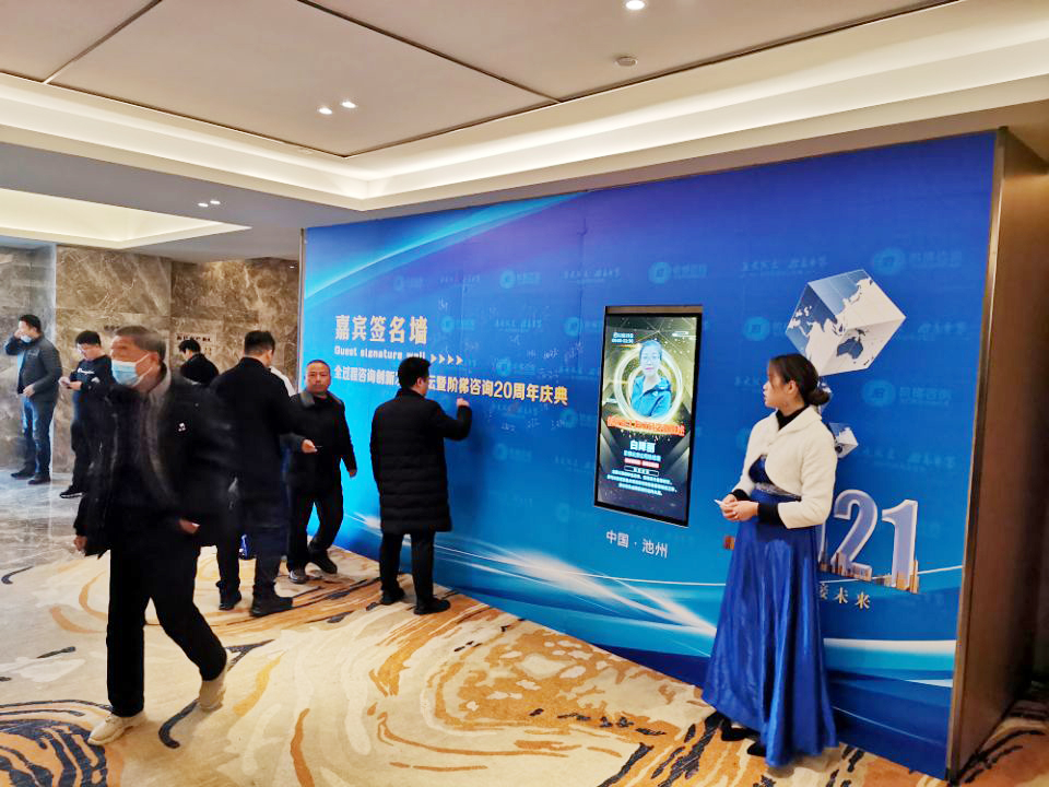 參加論壇的專(zhuān)家和代表在簽名墻簽字、留影