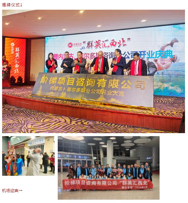 2024年1月12日至14日,階梯咨詢“群英匯西北”暨內(nèi)蒙古、鄂爾多斯咨詢分公司開業(yè)慶典活動(dòng)在鄂爾多斯舉行,階梯咨詢總部各級(jí)管理人員、部分分支機(jī)構(gòu)負(fù)責(zé)人、以及內(nèi)蒙古、鄂爾多斯咨詢分公司的全體員工出席了活動(dòng),共同見證階梯咨詢成長歷程,促進(jìn)戰(zhàn)略分享和目標(biāo)認(rèn)同。