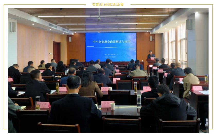 市企業(yè)服務(wù)中心負責人胡建中擔任主講嘉賓。胡建中圍繞“國家對中小企業(yè)的政策支持與方向”、“省、市、區(qū)當前主要政策”以及“企業(yè)如何更好地利用政策資源”等內(nèi)容進行了深入淺出的講解。本次參訓的企業(yè)涵蓋了制造業(yè)、農(nóng)林業(yè)、住建、服務(wù)業(yè)、文化旅游業(yè)、交通運輸業(yè)、采掘業(yè)等多個領(lǐng)域;胡建中有針對性地對適應(yīng)這些企業(yè)的相關(guān)惠企政策進行了詳細分析,并通過典型案例的剖析,使參會者對相關(guān)政策有了更直觀的理解。