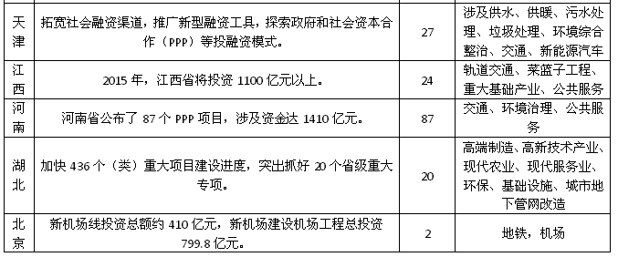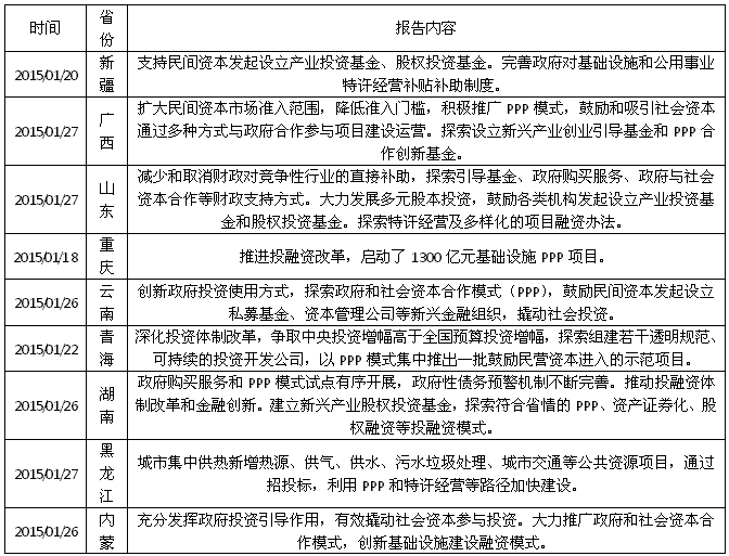 圖表 2015各地兩會政府工作報告中對PPP項目的提法