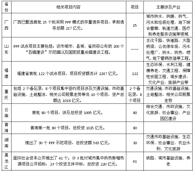 圖表 地方PPP相關(guān)項目內(nèi)容涉及產(chǎn)業(yè)